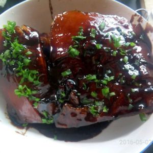 在蒸之前会发现,汤汁并不能形成图中那么粘稠,所以我选择在蒸肉时继续收汁,直至汤汁鲜亮粘稠,最后浇上汤汁撒上小葱,大功告成!!!!