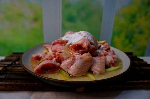 用厨房纸吸干水分,然后斩成均匀的小块儿备用,不要太小,基本一个鸡翅两块查不到