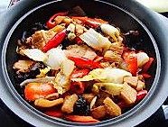 加入娃娃菜和黑木耳翻炒。菜变软的时候加盐炒均匀。