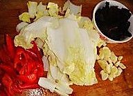 五花肉切薄片用生抽和料酒腌制10分钟,娃娃菜从中间切断,黑木耳提前用温水泡发撕成小朵洗净,红椒切块,蒜姜切片。