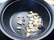 锅内放油,三成热时放入花椒和八角,再放入姜蒜片炒香,加入五花肉用小火慢炒,炒到五花肉微微变黄至熟。