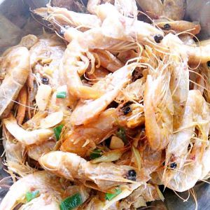 再加少许葱花,翻炒几下就可以出锅了。味道还不错,小朋友们特别爱吃,如果是新鲜的活虾味道肯定会更好。