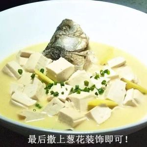 加入开水(没过鱼身2-3厘米),大火煮15分钟。待汤汁煮成奶白色后,加入豆腐,用盐、鸡精、白胡椒粉调味后继续煮10分钟即可。