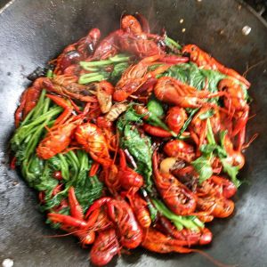 放花生油,把花椒、干辣椒等等一起爆香。然后放小龙虾一起炒一下。最后发放水煮30-60分钟,这样子才进味。