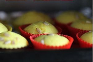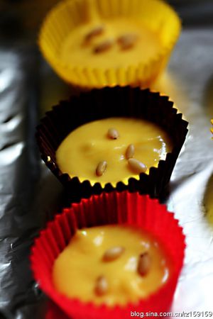 冷藏后的面糊倒入裱花袋 挤入模子8分满撒上松子仁