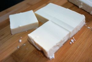 豆腐洗净,用厨房纸巾吸干水份。切成块,块不要太薄或者太小。
