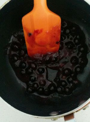 在烤派皮时煮蓝莓内馅:蓝莓+砂糖+冷水+蜂蜜+淀粉,放入不沾锅内,小火熬至变粘稠,离火