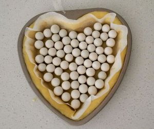 烤箱预热185度上下火中层,烤15分钟后取出,拿掉烤石后再入炉烤20分钟左右,直至派皮变金黄