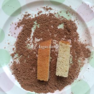 吐司切均匀的条状,可可粉和粗砂糖在碟子里混合。
