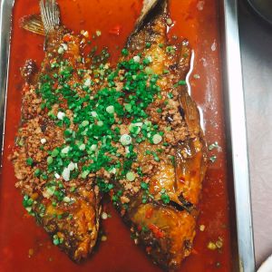 瘦肉末用油豆瓣酱炒成哨子,待鱼好了淋在上面