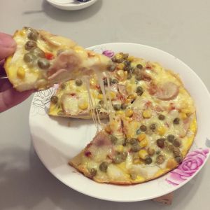 全部材料放好,关上盖子,三分钟后出锅。我的材料放太多,盖上上盖后奶酪沾到了盖子上。