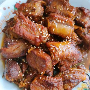 四十分钟后开盖,喜欢带汤的可以直接出锅,也可以大火收汁,装盘,撒上点白芝麻做点缀!