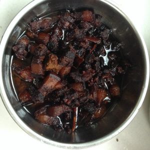 锅内留少许油放入白糖,白糖变色后将其余佐料逐一放入