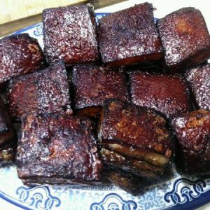 肉块出锅后用调制好的蜂蜜老抽趁热抹至肉块