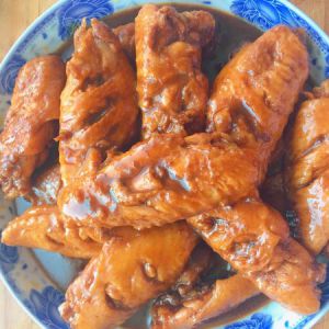 汤汁收浓就可以出锅,锅内的汁液浇在鸡翅上,特别美味