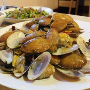放入适量盐,少许味极鲜,水淀粉,翻炒至蛤蜊开口,出锅即可