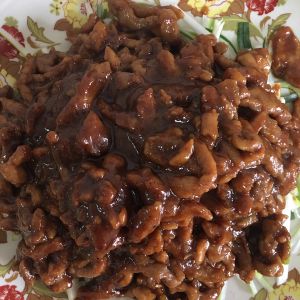 二合一(酱汁熬制半粘稠时倒入肉丝翻炒,尽量让每个肉丝都裹上酱汁,自己拿捏浓稠度,起锅装盘)