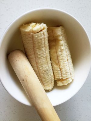 准备一根香蕉,去皮,用研磨碗捣烂。