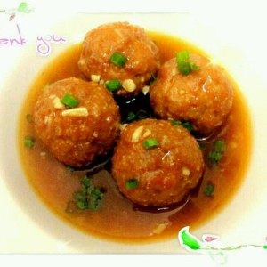 锅中放入少许油,加蒜末爆香后倒入调好的汁。大概两三分钟,汁到了一定的浓度后,便可出锅淋在蒸好的狮子头上面,撒些葱花或用焯好水的小油菜,做装饰也可。