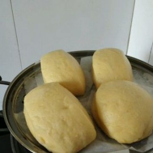 先不要急着点火蒸馒头,馒头还要在蒸锅里继续醒发20分钟后,馒头的体积又变大了一半再点火