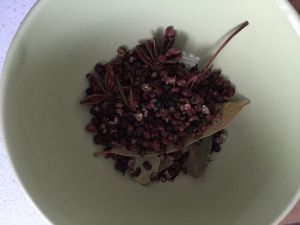 锅里多放些油,烧热之后关火,把花椒香叶八角入锅炸香,然后用漏勺捞出。
