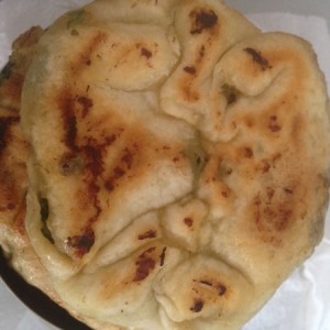 准备韭菜馅。择韭菜、清洗、切段,葱也这样准备,拌在里面。