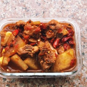 焖煮至冬瓜变软的时候,加干辣椒,最后调整一下味道,中火收汁