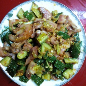 猪头肉切片放在黄瓜的黄瓜的容器里拌匀就可以装盘啦!