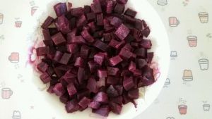 紫薯切丁蒸熟。