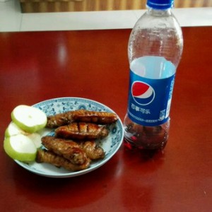 将鸡翅用水煮熟去腥,放入锅中煎加入八角,煎至变色加入可乐,料酒,生抽,小火烧30分钟,中途注意不要糊锅