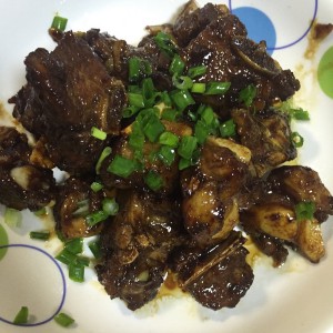 油烧热放入蒜姜,爆香后倒入排骨,再加入糖浆及陈醋大火翻炒,收汁即可出锅。