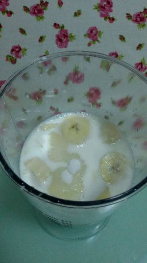 香蕉切片,放入搅拌杯。