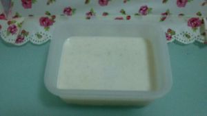 剩余的奶昔可倒入方形保鲜盒,做沙冰或冰砖。一起放入冰箱冷冻,冷冻六小时以上。(我是晚上做,第二天吃。)