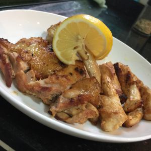 把鸡肉煎制两面金黄后,再煎多几分钟,因为鸡腿肉厚不易熟,之后再把鸡胸切片放入锅中煎熟。放三分之一的碗的水,这样肉吃起来比较没那么干。然后把柠檬先滚动挤压一下再切半,把一半的柠檬汁挤到锅里再加入适量的盐、胡椒粉调味。翻炒一会儿。