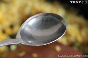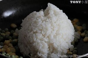 加两勺水让米饭更加滋润,因为等会还要烘烤。