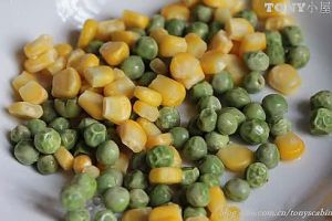 青豆和玉米都是超市冷冻柜里买的,再清洗一遍。