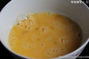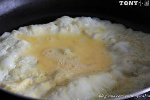 热锅后加入橄榄油,放入鸡蛋煎到两面金黄后拿出备用。