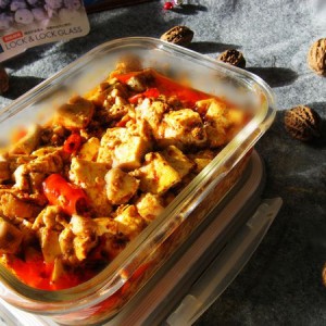 乐扣格拉斯碗里加色拉油,葱姜蒜和麻婆豆腐酱料。注意千万不要把普通玻璃碗放到微波炉里,忽冷忽热会炸裂的,很危险的。麻婆豆腐料我只用了一半,够咸度了。把这碗调料放到微波炉里高火叮一分钟。