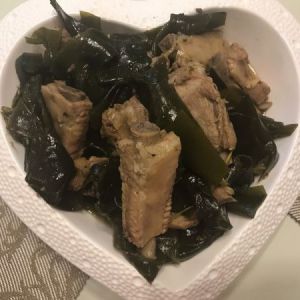 大概排骨炖了一个小时的时候可以放海带了,看看喜欢喝汤吗,喜欢的话可以加海带的时候,不用空的那么干,在出锅前10分钟的时候加盐,就可以出锅了