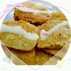 将裹了鸡蛋的馒头放入平底锅里煎香,然后翻面,注意火候,调成中火好操作。