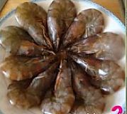 将鲜虾剪去虾须冲洗干净后,沥干水分,用牙签挑去虾线,用料酒、元葱丝、姜丝、胡椒粉、盐腌制10分钟。