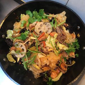 木耳泡发,藕吊水