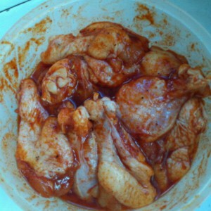 1.将翅中洗净,加入烧烤料拌匀(可加入少量水)放入冰箱冷藏,腌制12个小时
