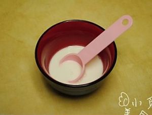 在豆浆机制浆的同时,用1小匙熟石膏粉、2小匙玉米淀粉加3大匙凉白开调匀,