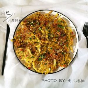 最后打开盖,土豆饼表面,撒上白芝麻,葱花,继续煎烤一分钟即可!用铲子慢慢的拿出来,切开摆放在盘子里!