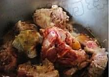 高压锅中加水,把所有调料扔进去,再倒点生抽老抽,大酱冰糖,大火压制40分钟,最简单的酱骨头就完成了。