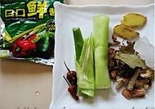 准备调料:葱姜蒜,花椒大料,香叶桂皮,山楂草果,还有两个小辣椒。不是我家调料多,您买一袋炖肉料就成。把调料用纱布包上,煮出来的汤干净。还有一袋很重要的调料---大酱,我没特意选牌子,就是家里正好有这么一袋酱,就随便用了,还好,味道很正点。其他的生抽老抽没拍,不证明没有哈^_^
