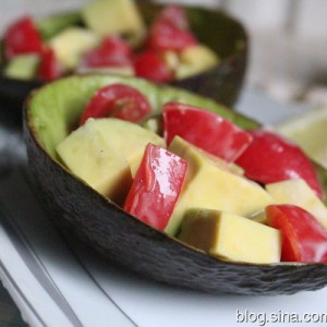 取出的牛油果肉可以再切小些,圣女果洗净切小块
