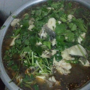 等水烧开加入嫩豆腐鱼片蒜瓣五分钟后出锅撒上芝麻香菜。这道菜就大功告成了