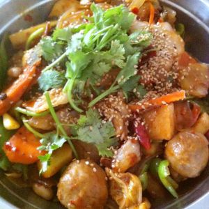 出锅前放一小勺陈醋提香,撒上适当芝麻和香菜,香喷喷的麻辣香锅就出锅啦